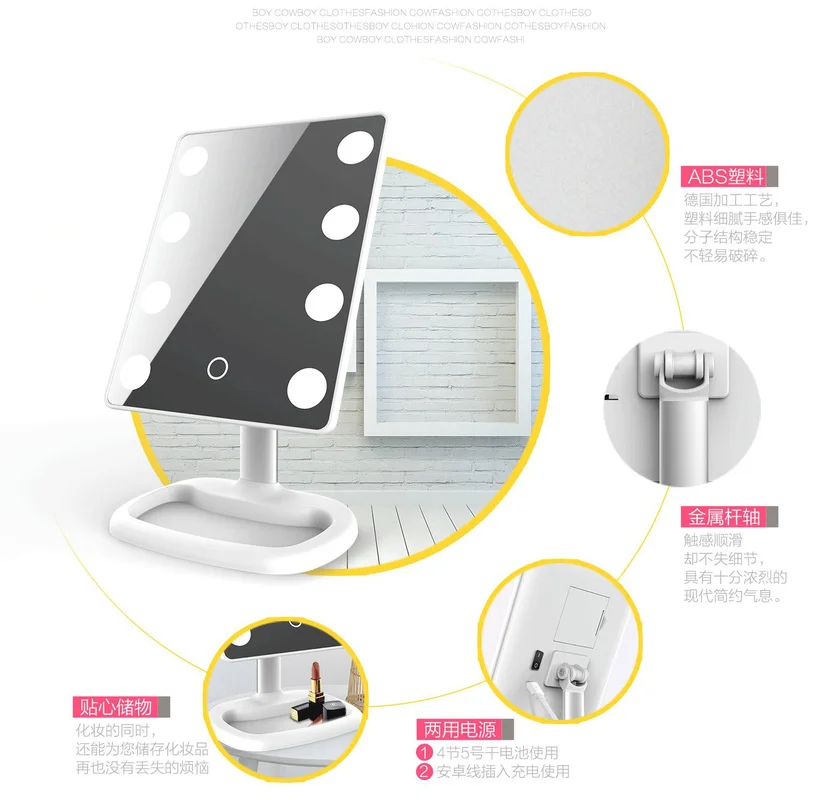 New Flat Light LED Makeup Mirror Light Bulb Desktop Table Lamp Mirror Vanity Mirror Square Aluminum