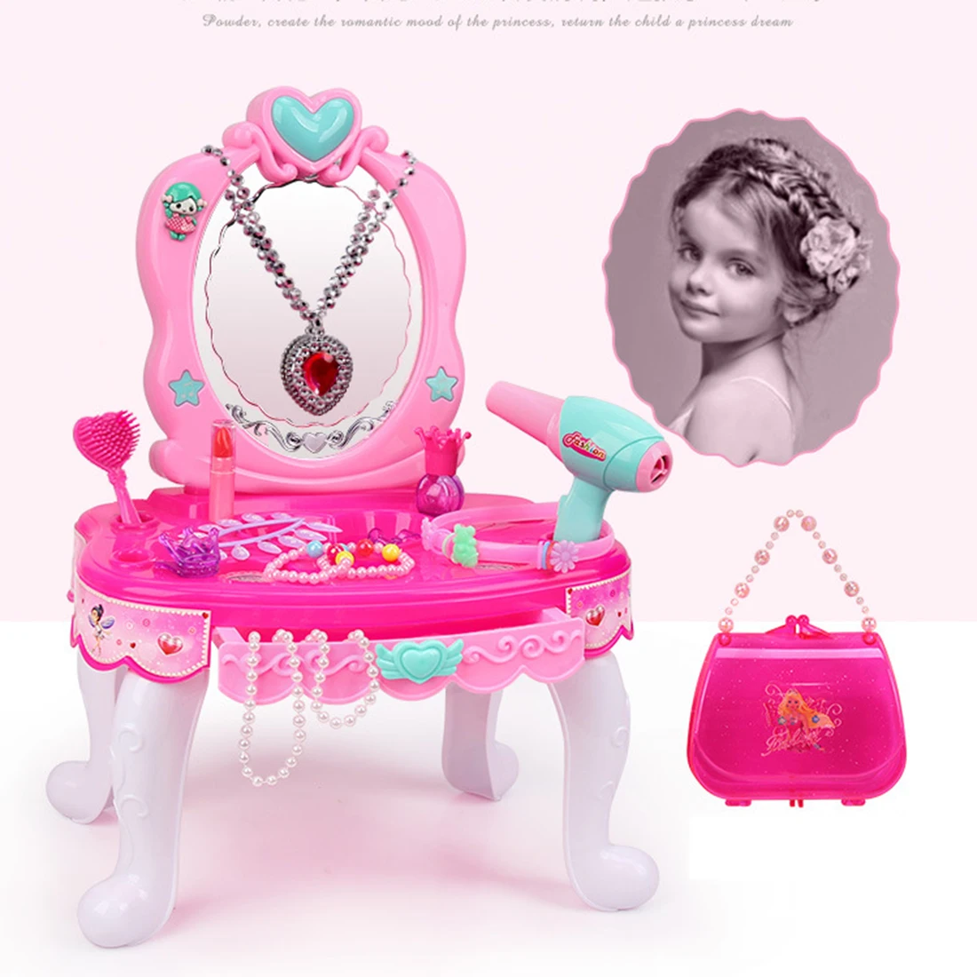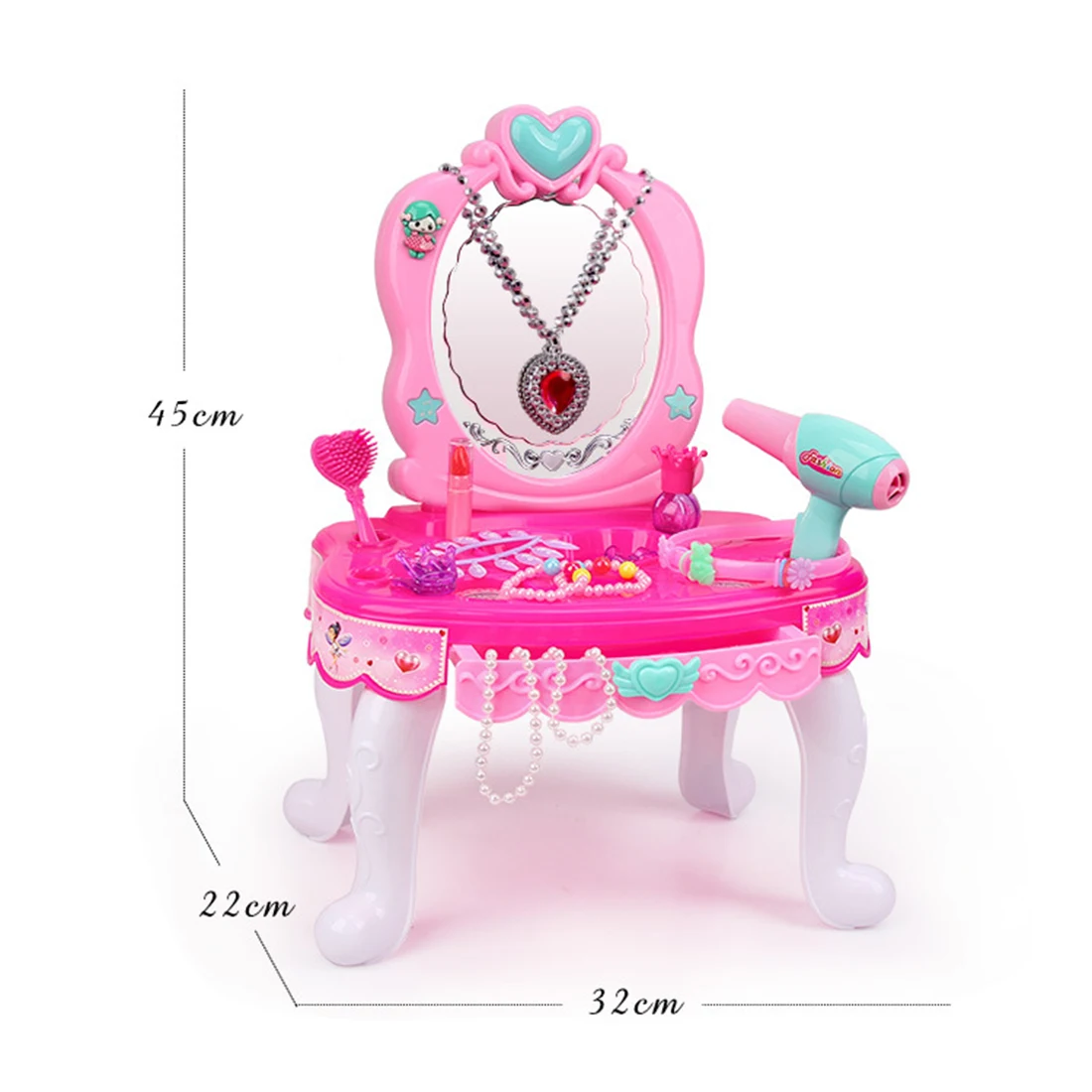 Best Quality 12Pcs Girls Pretend Dressing Table Playset Simulation Hair Dryer Makeup Toys Beauty Pretend Play To