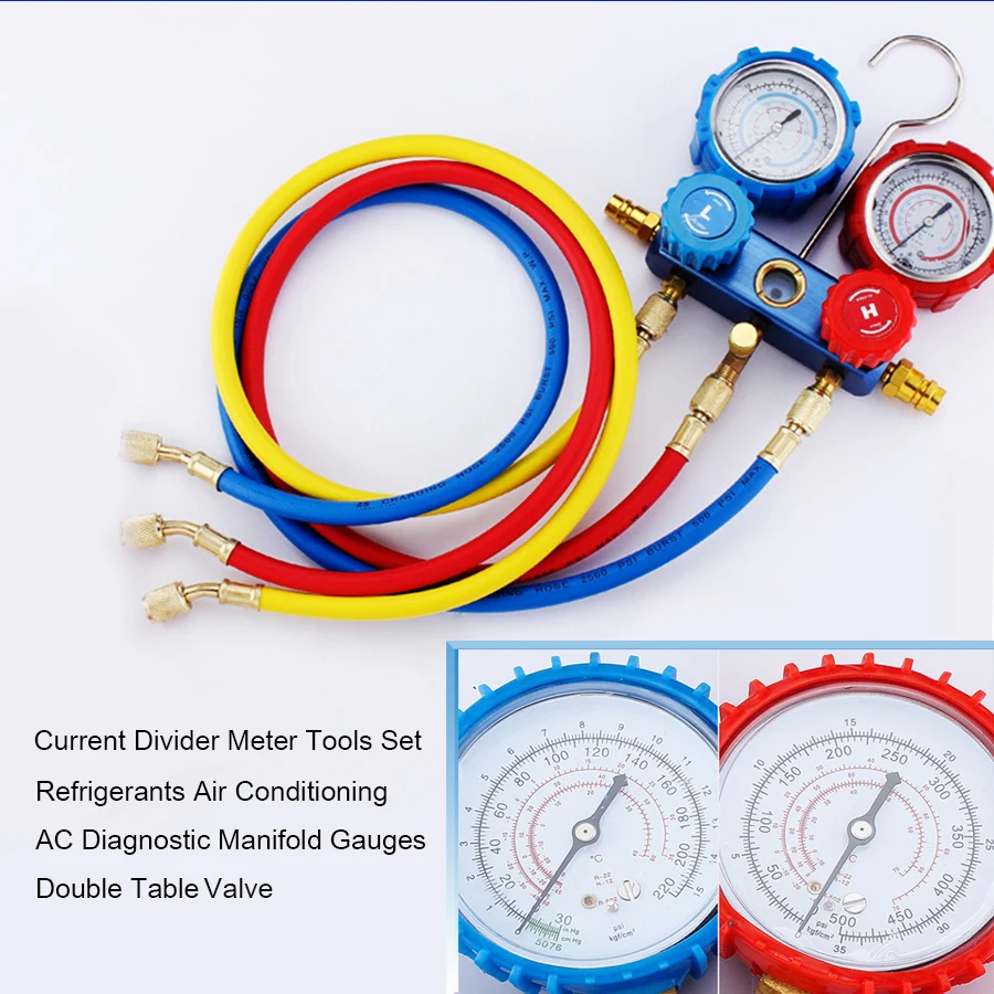 Current Divider Meter Tools Set Refrigerants Air Conditioning AC Diagnostic Manifold Gauges Double