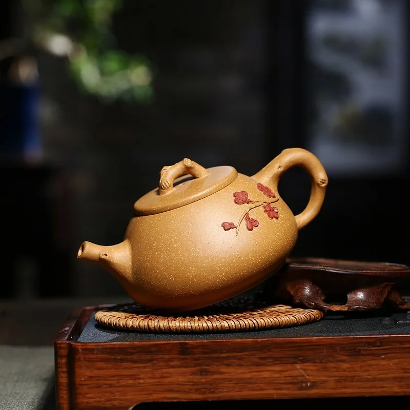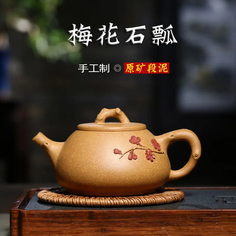 Best Quality Yixing Yixing Clay Teapot Raw Ore Segment Mud Plum Stone Scoop Teapot Hand-made Flower Stickers Tea