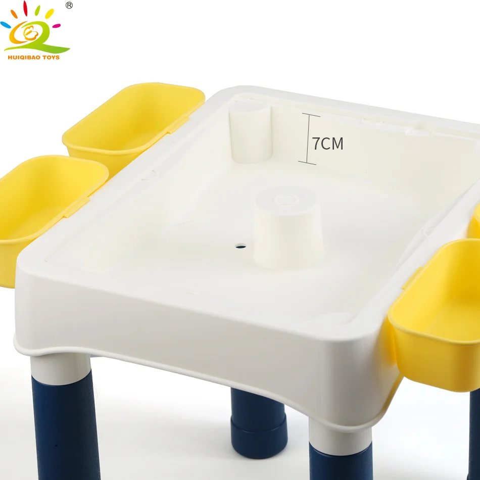 Best Seller HUIQIBAO TOYS Multifunction Study Desk Table Big Building Blocks Legoinglys Duploed With 52pcs Marb