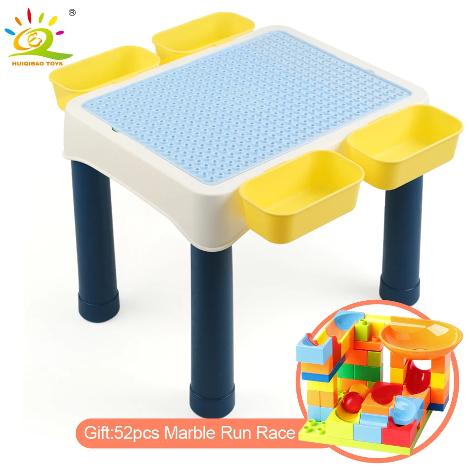 BEST HUIQIBAO TOYS Multifunction Study Desk Table Big Building Blocks Legoinglys Duploed With 52pcs Marb