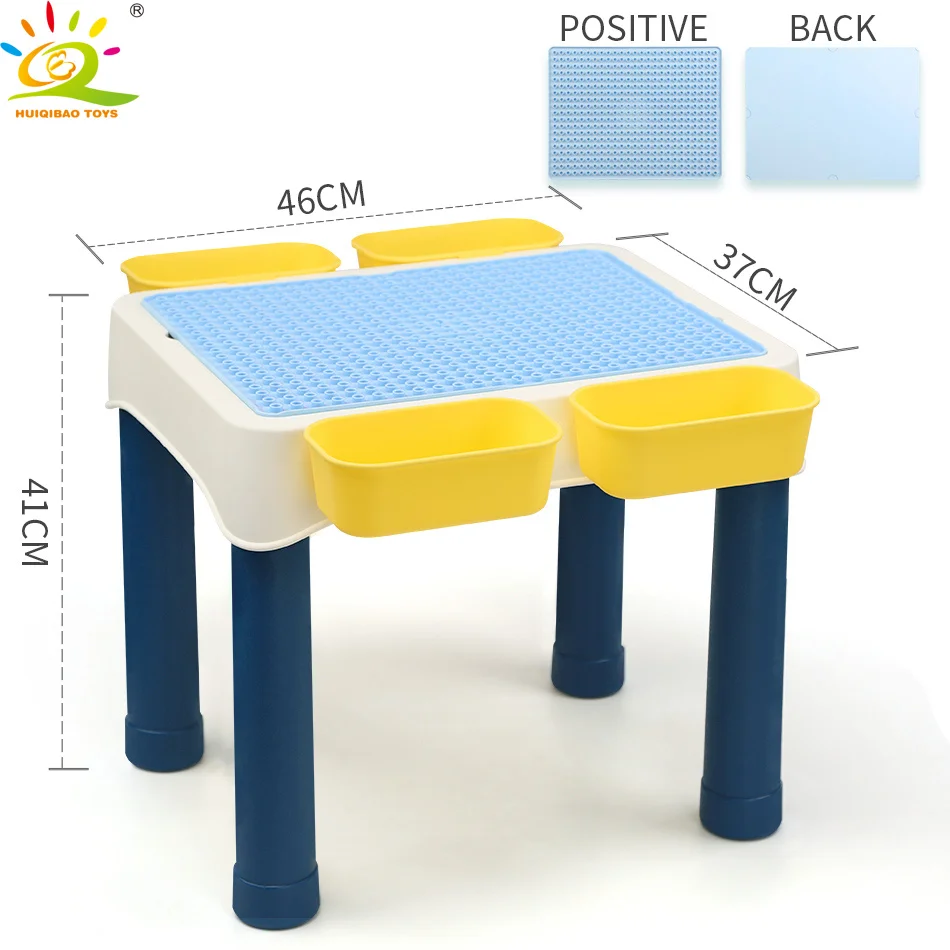 HUIQIBAO TOYS Multifunction Study Desk Table Big Building Blocks Legoinglys Duploed With 52pcs Marb