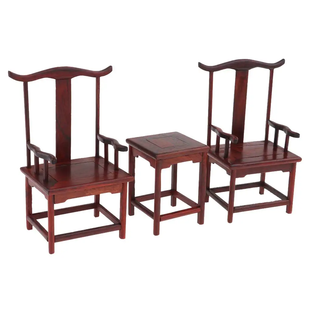 3pcs 1/6 Wooden Living Room Furniture Set Miniature Armchair + Tea Table Model Doll House Accessori