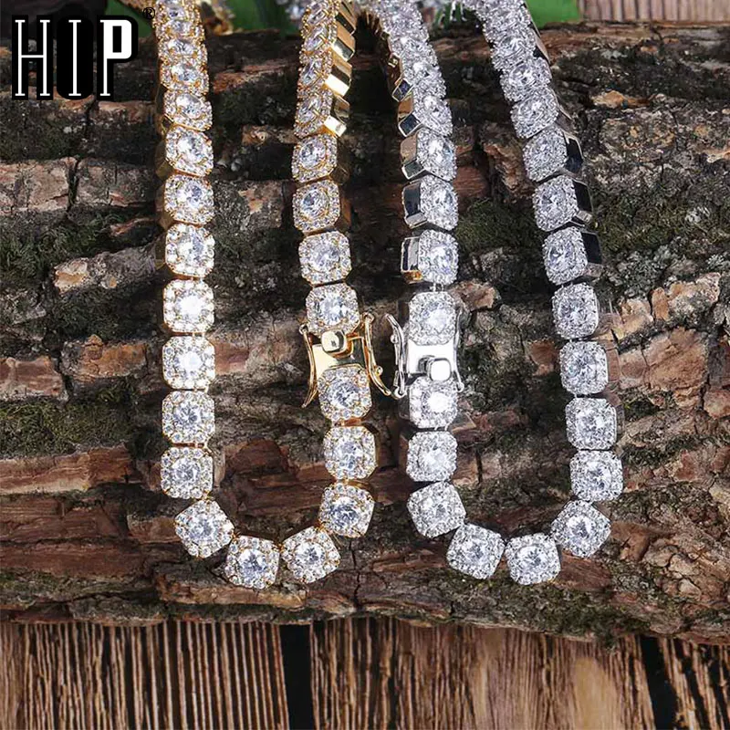 HOT Sale Hip Hop 10MM Bling Iced Out Tennis Chain Square Lattice AAA CZ Stone Gold Silver Cubic Zircon Choke