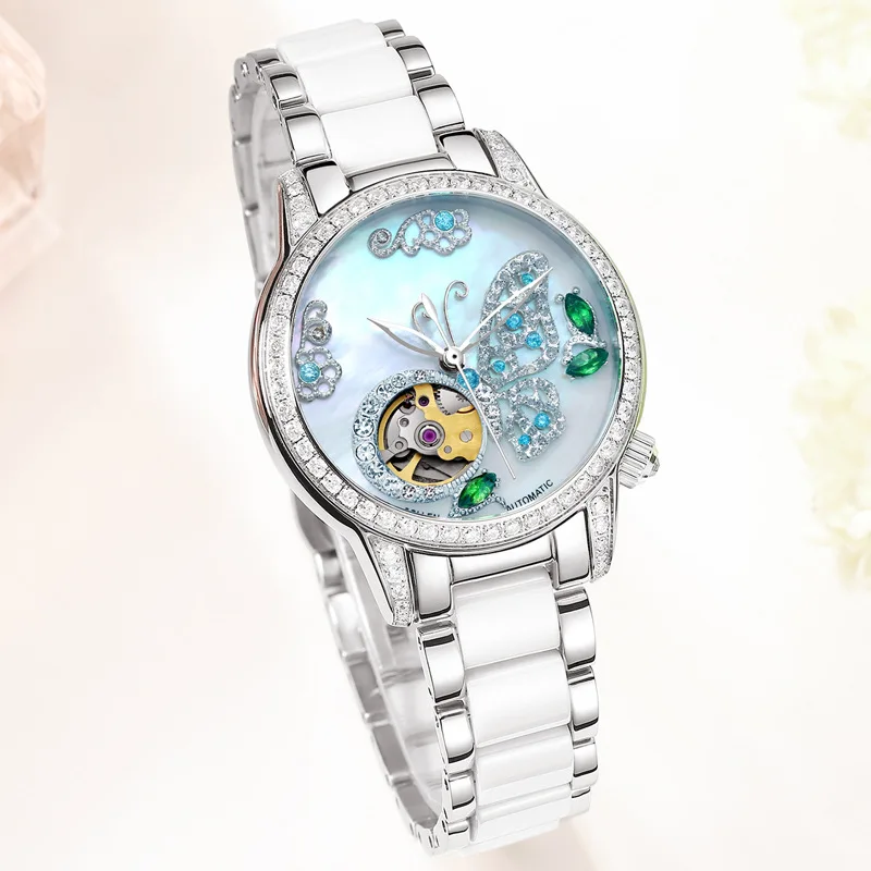 ORIGINAL SOLLEN Brand Women Automatic Mechanical Watch Ladies Hollow Waterproof Watch All Ceramic Fashion Di