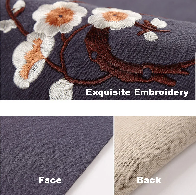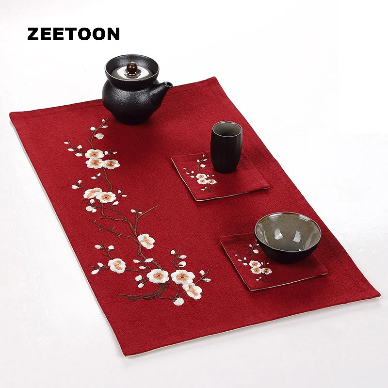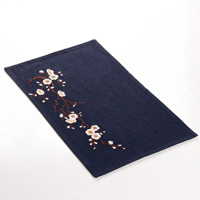 Japanese Style Double Linen Embroidery Plum Table Runner Tea Ceremony Tea Mats Kung Fu Tea Set Acce
