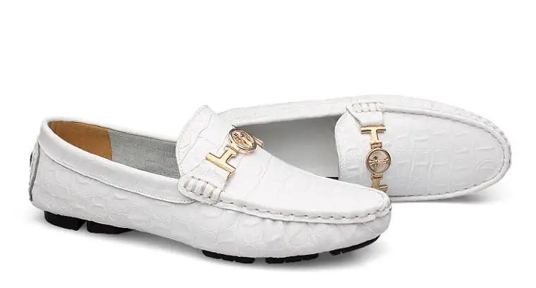 HIGH QUALITY Slip-On Men's Casual Shoes Spring New Style Flats Stone Pattern Genuine Leather Loafers Dress Shoes